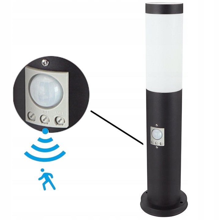 LAMPA OGRODOWA STOJĄCA SŁUPEK ZEWNETRZNY CZARNA 45CM E27 CZUJNIK RUCHU